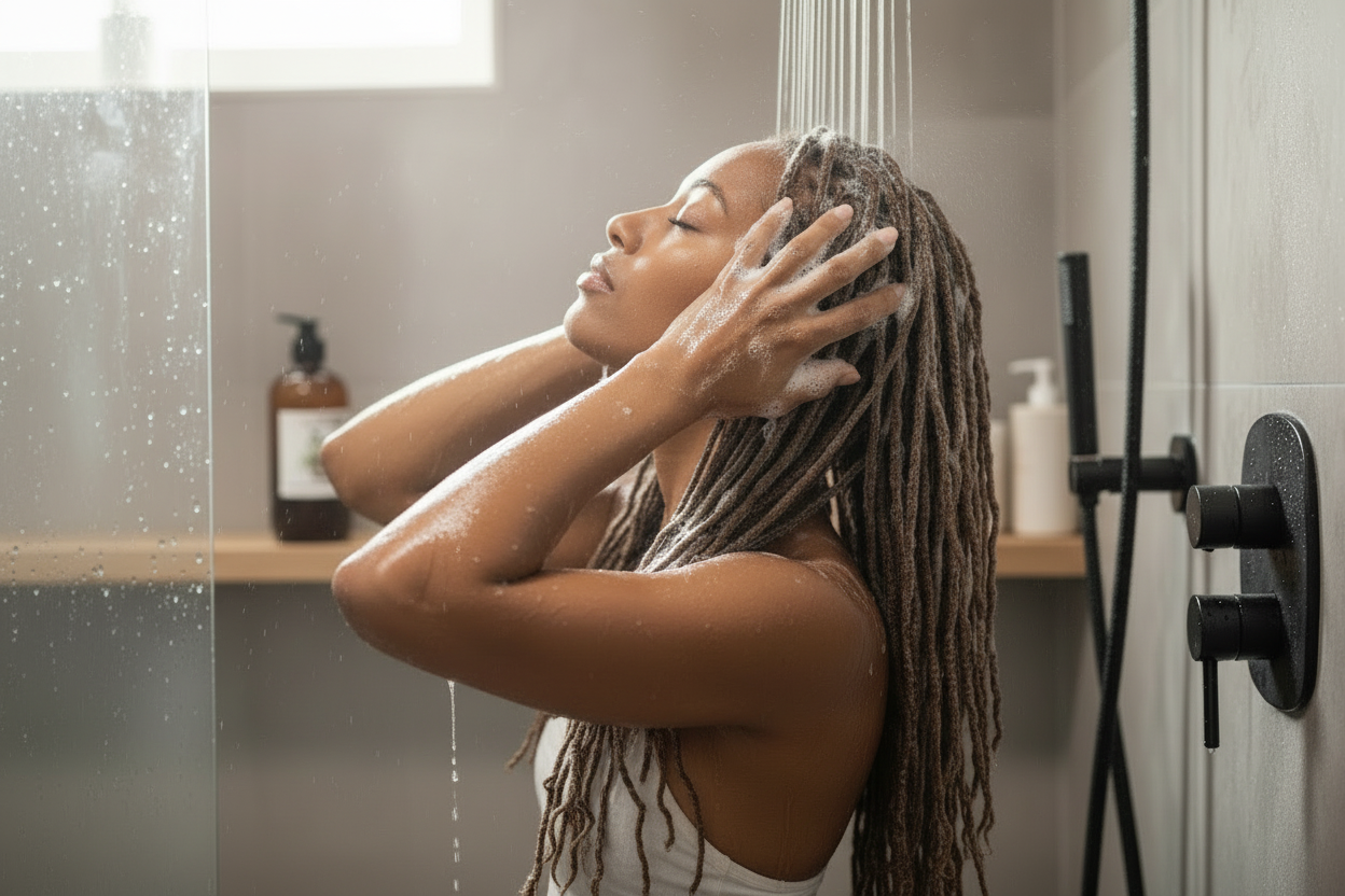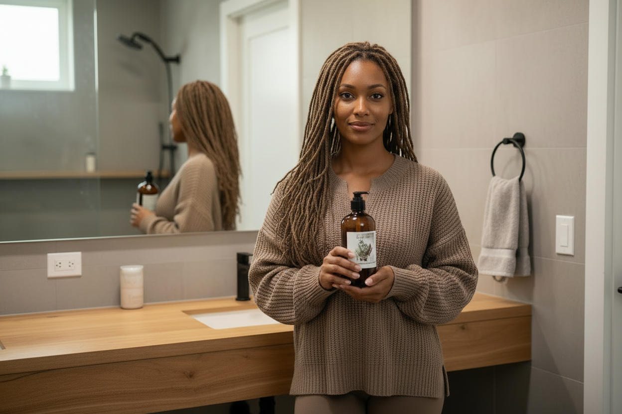 Cocoa pod ash and plantain skin ash gently clarify the scalp, removing buildup and promoting healthy hair growth.